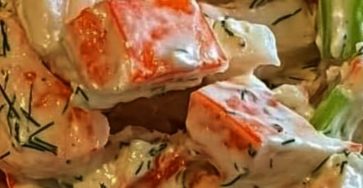 Ingredients: 1 pound krab meat imitation crab 1 minced shallot 1/2 cup minced celery 1/2 cup mayonnaise 1/2 teaspoon paprika 1/2 teaspoon dill 1/4 teaspoon kosher salt 1/4 teaspoon coarse ground black pepper Instructions: In a…