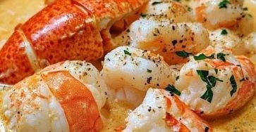 Ingredients: 1/2 Ib shrimp, peeled and deveined1/2 lb crab meat1/2 Ib cooked lobster meat, chopped3 tablespoons butter1 small onion, diced2…
