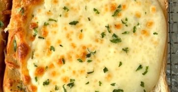 Thick Texas toast slathered with melted butter garlic Parmesan and oregano covered in two layers of melted mozzarella and provolone…
