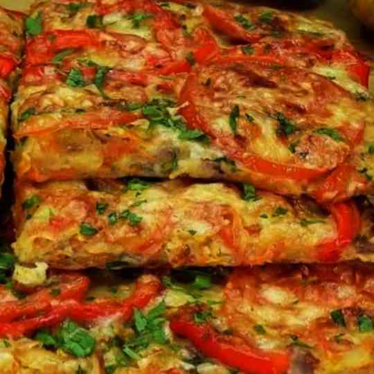 Make the crust: Put the potato mix into a baking dish that has been greased. Cook in an oven that has been heated to 180°C (356°F) for 25 minutes.