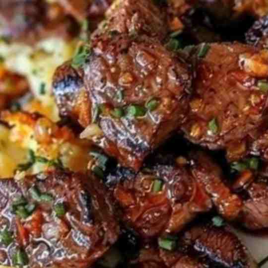 1. Plate the Dish: Serve the steak bites over the mashed potatoes. Drizzle any remaining garlic butter sauce from the skillet over the top.