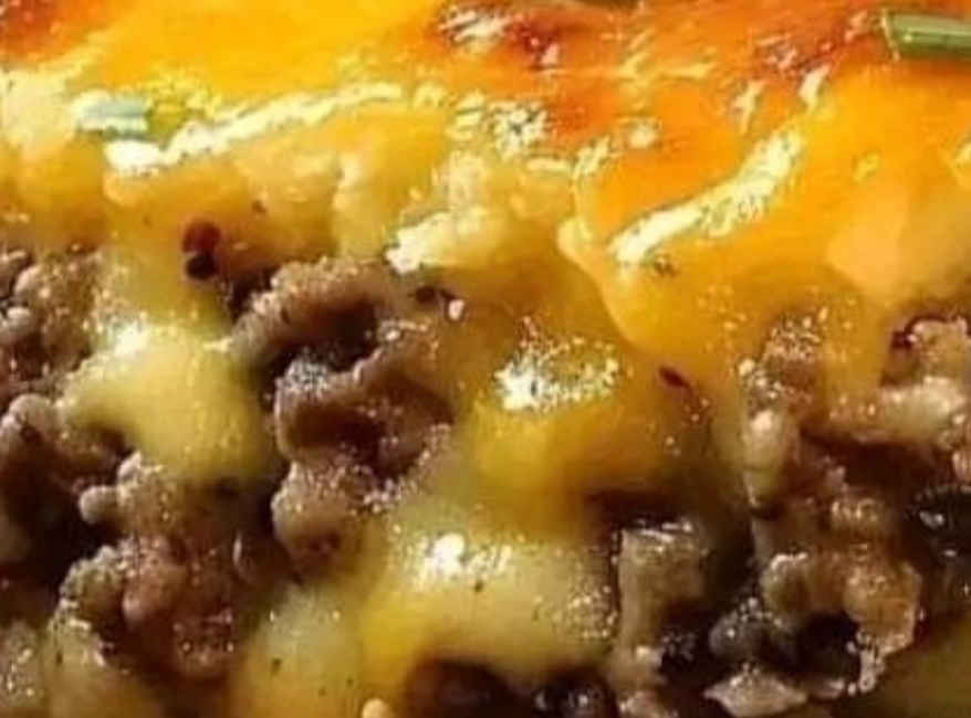 large onion, chopped (1 cup)1 kilo of minced meat1/2 teaspoon of saltBlack pepper flour (to taste)Garlic powder (to taste) (optional)1 cup shredded cheddar cheese1/2 cup original cookie mix (or all-purpose flour)1 cup whole milk2 large eggs