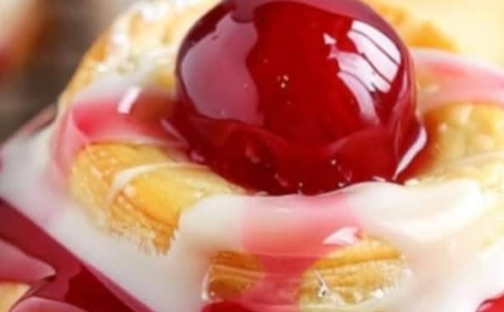 Precisely add the cherry pie filling to each portion of the crescent roll dough. Each section should receive approximately 3 to 4 tablespoons of filling. Ensure uniform distribution.
