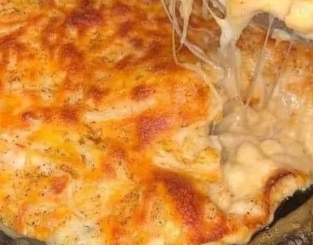 Transfer to your baking dish and top with 1 cup reserved sharp cheddar cheese.