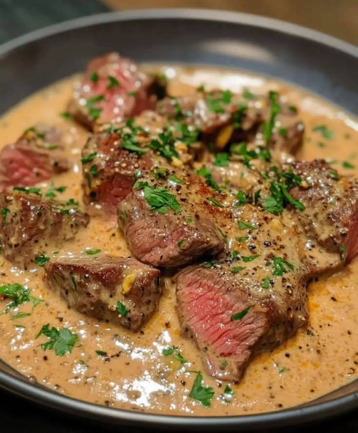 Add the steak bites back into the pan and simmer 1–2 minutes.