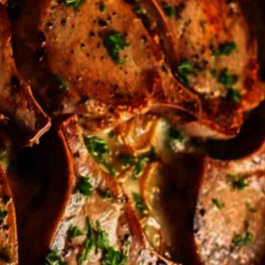 Brown & Layer: On a skillet, brown the pork chops after seasoning them. Once done, position them atop the potato-onion layer.