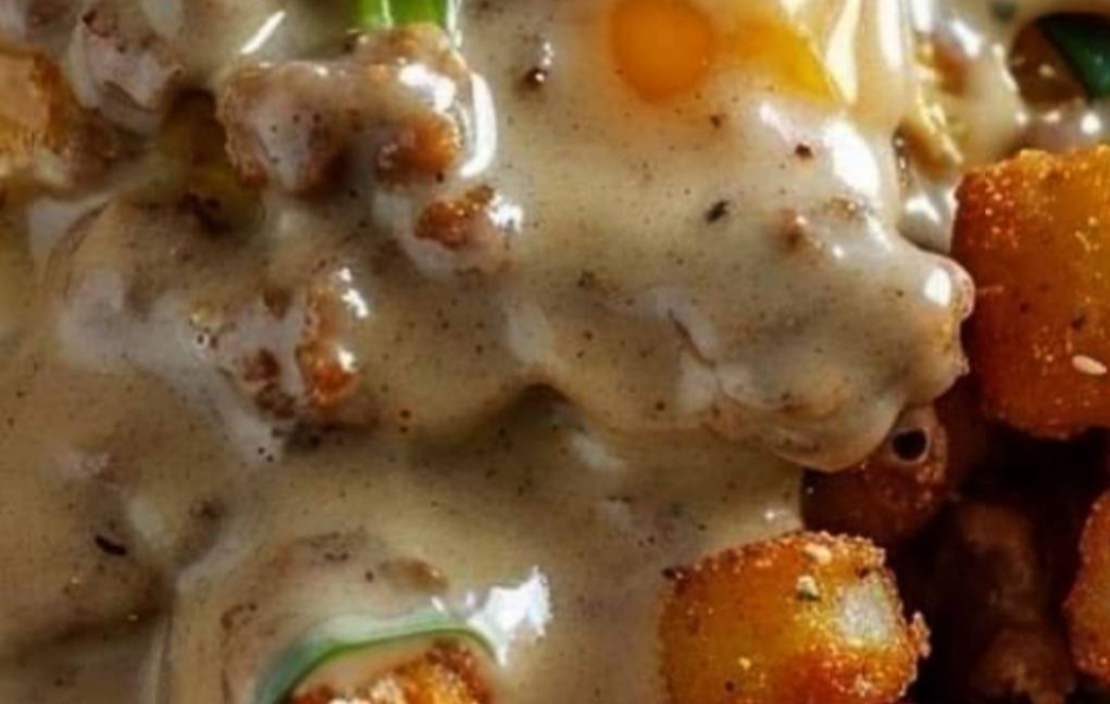 Enjoy your loaded tater tots with sausage gravy as a comforting and indulgent meal!
