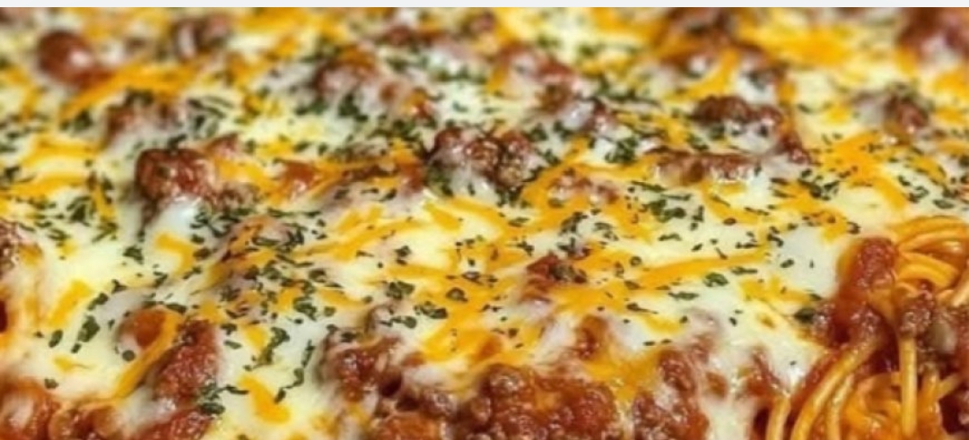 Ingredients :1 lb of ground beef1 jar of spaghetti sauce8 oz of cream cheese¼ cup sour cream½ lb cottage cheese (equals 1 cup)½ cup butter (1 stick)1 pkg spaghetti 16 ozGrated cheddar cheeseDirections:Preheat your oven to 350°. Boil your spaghetti noodles until al dente (firm). Drain and set aside until ready to assemble.Combine the cream cheese, sour cream and cottage cheese until well blended.Brown your hamburger and when done, drain well.Combine the hamburger with your spaghetti sauce.Put a few slices of butter into a 9×13 pan then pour half of your spaghetti noodles on top.Take your cream cheese mixture and pour on top of the noodles. Spread well over noodles.Pour the rest of the noodles on top of the cream cheese mixture. Put a few more slices of butter on top of the noodles.Pour your spaghetti and meat sauce on top of your noodles.Now it is ready to put into the oven for 30 minutes. After 30 minutes, pour the desired amount of grated cheese on top and return to the oven for 15 minutes to allow cheese to mel.