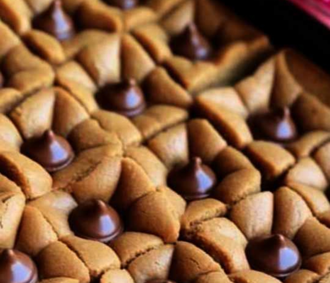 Upon removing from the oven, immediately press Hershey’s Kisses onto the top.
