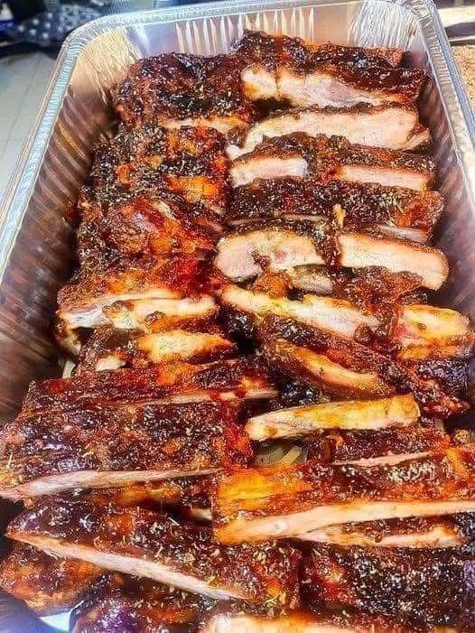 Place the ribs on a prepared cookie sheet, meat side up, after covering it with foil. Drizzle more sauce over the ribs and season with garlic powder.