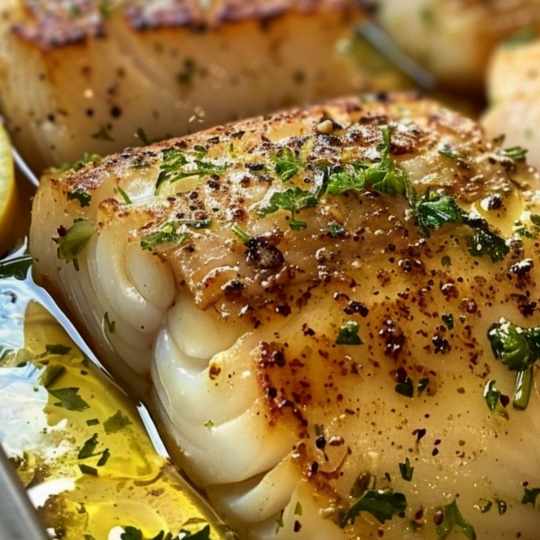 Four people may enjoy this baked cod dish with lemon and garlic.
