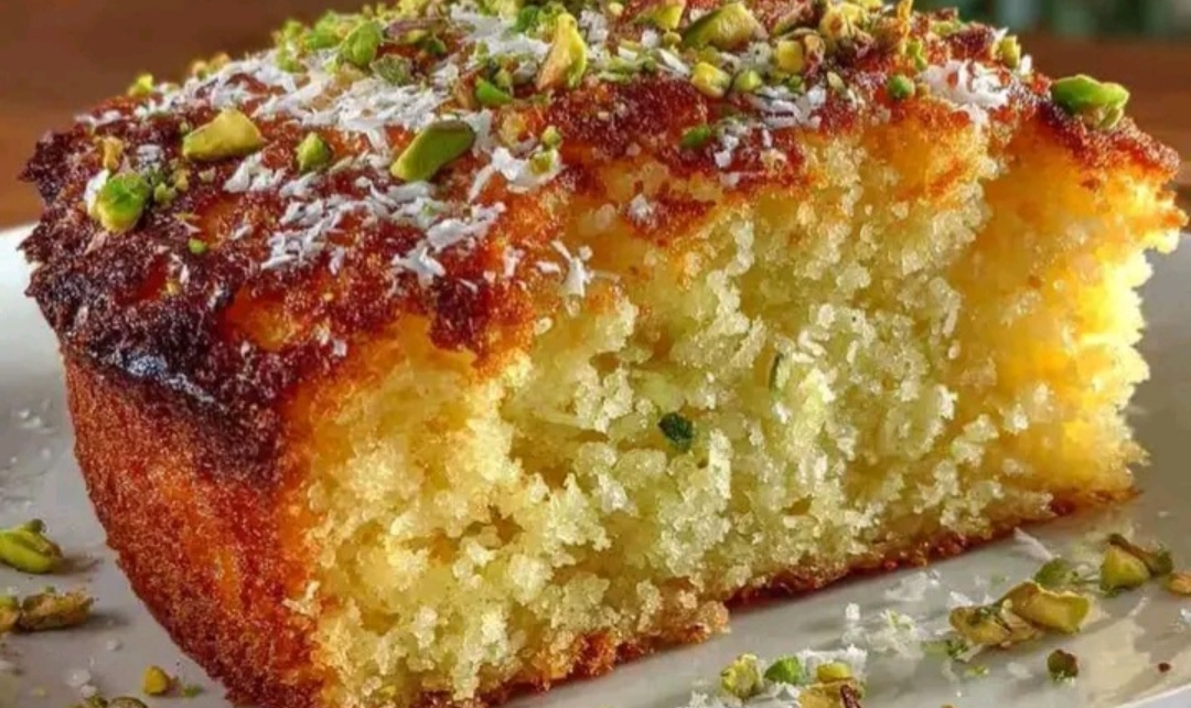 Garnish it with the pistachios and coconut and let it rest for a while to allow it to fully absorb the syrup.