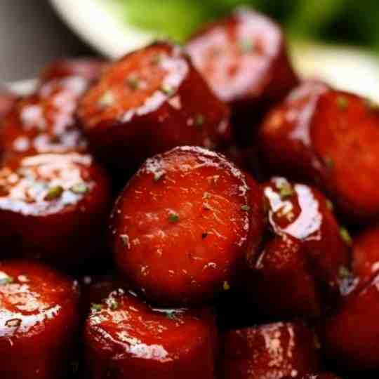 Slow Cooker Apple Kielbasa Bites are a tasty mix of sweet and savory flavors that can be eaten as a starter or a filling snack. This meal is easy to make and has a delicious flavor that makes it popular at parties, potlucks, or even as a snack for movie nights. Even though kielbasa comes from countries in Eastern Europe like Poland, adding apples to it gives it an American touch, showing a mix of cooking styles. Using a slow cooker helps blend the flavors well and makes this dish a great option for people who like simple but tasty cooking.