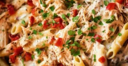 Before serving, garnish with dried Italian herbs and, if desired, red pepper flakes.