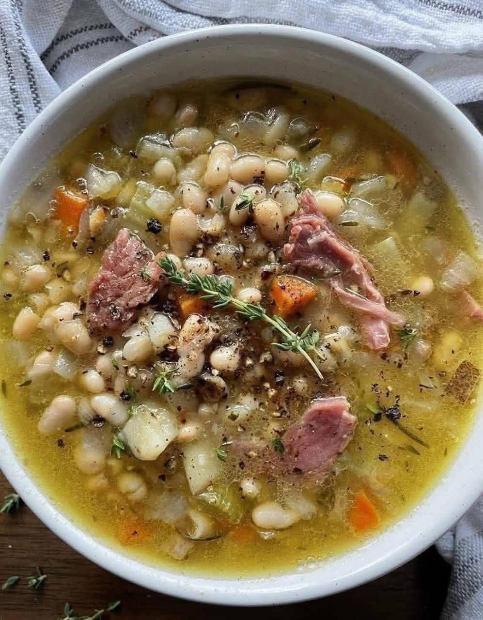 This hearty, comforting soup is the ultimate cozy meal. Packed with flavorful ham, creamy beans, and tender vegetables, it’s the perfect dish for chilly days. Whether you’re using up leftover ham or making it fresh, this soup delivers rich, savory flavor in every bite.